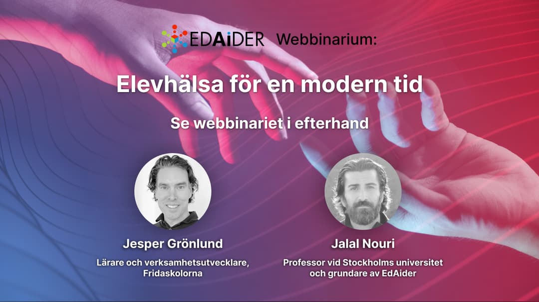 På det här webbinariet hör du Jesper Grönlund från Fridaskolorna och Jalal Nouri från EdAider berätta om arbetet med att utveckla verktyget och de positiva effekter användandet har fått.