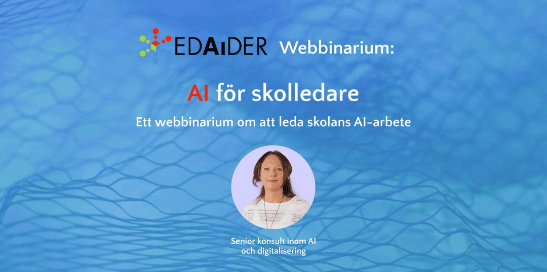 Vad innebär AI i skolan för dig som skolledare, och hur påverkar det ditt uppdrag som pedagogisk ledare? Vad behöver rektorer egentligen kunna om AI? Hur kan du leda skolans AI-arbete på ett hållbart, strategiskt och systematiskt sätt? Det är några av de frågor EdAider och Malin Frykman berörde i detta webbinarium om AI för skolledare.