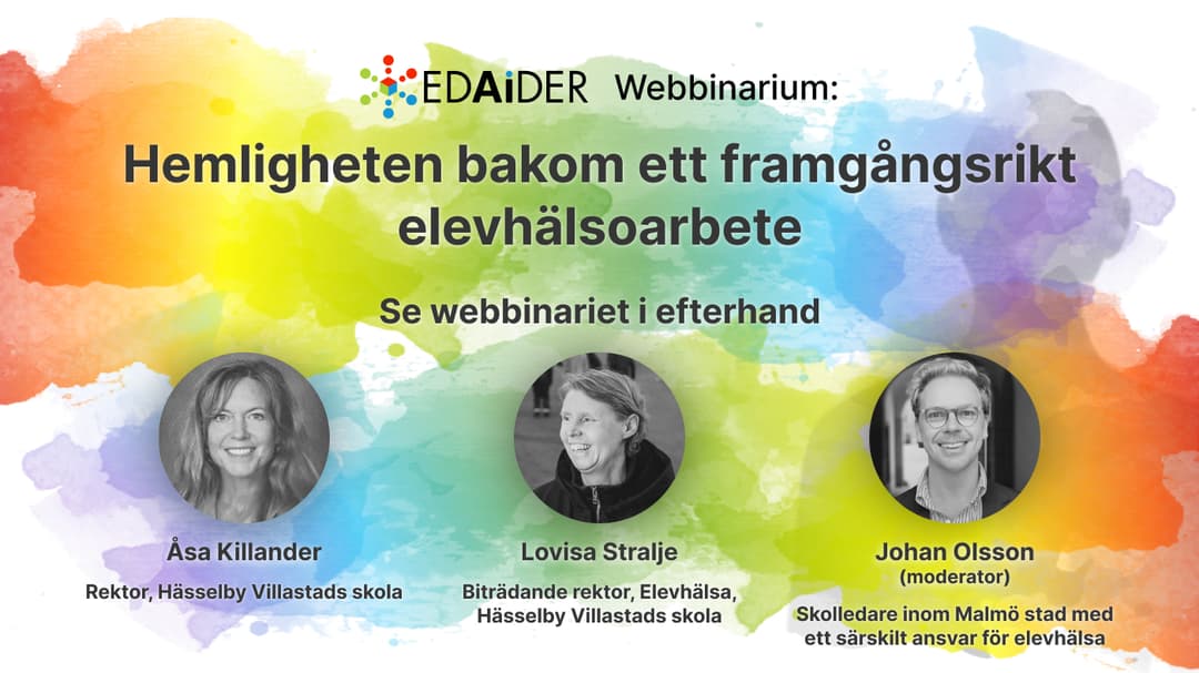 Ett mycket uppskattat och populärt webbinarium där du får höra mer om och inspireras av det framgångsrika elevhälsoarbetet på Hässelby Villastads skola.